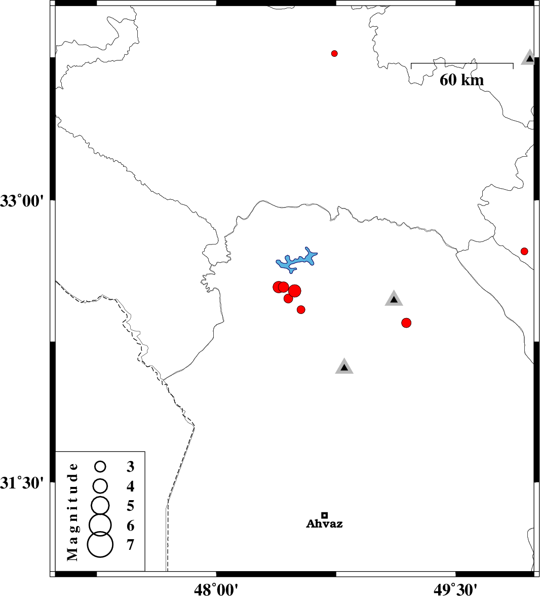 2014/03/07 | 22:05:51.6 | 01:35:51.6 | 33.77 | 48.74 | 15 | ML:1.7 | Lorestan Province, 14 km South of Borujerd | ||