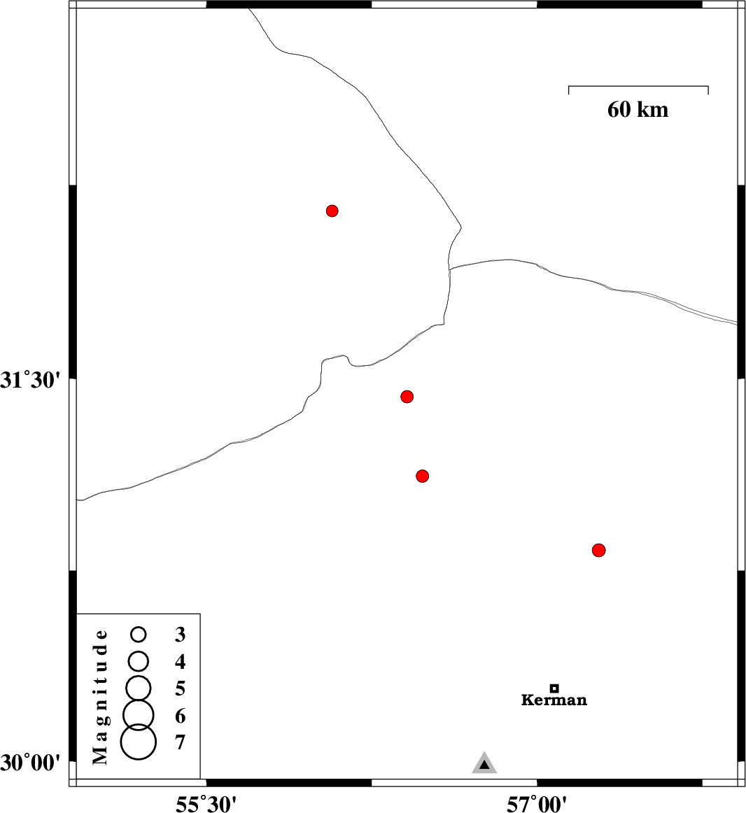 2014/03/09 | 05:07:05.0 | 08:37:05.0 | 30.83 | 57.28 | 16 | ML:2.7 | Kerman Province, 68 km East of Zarand | ||
