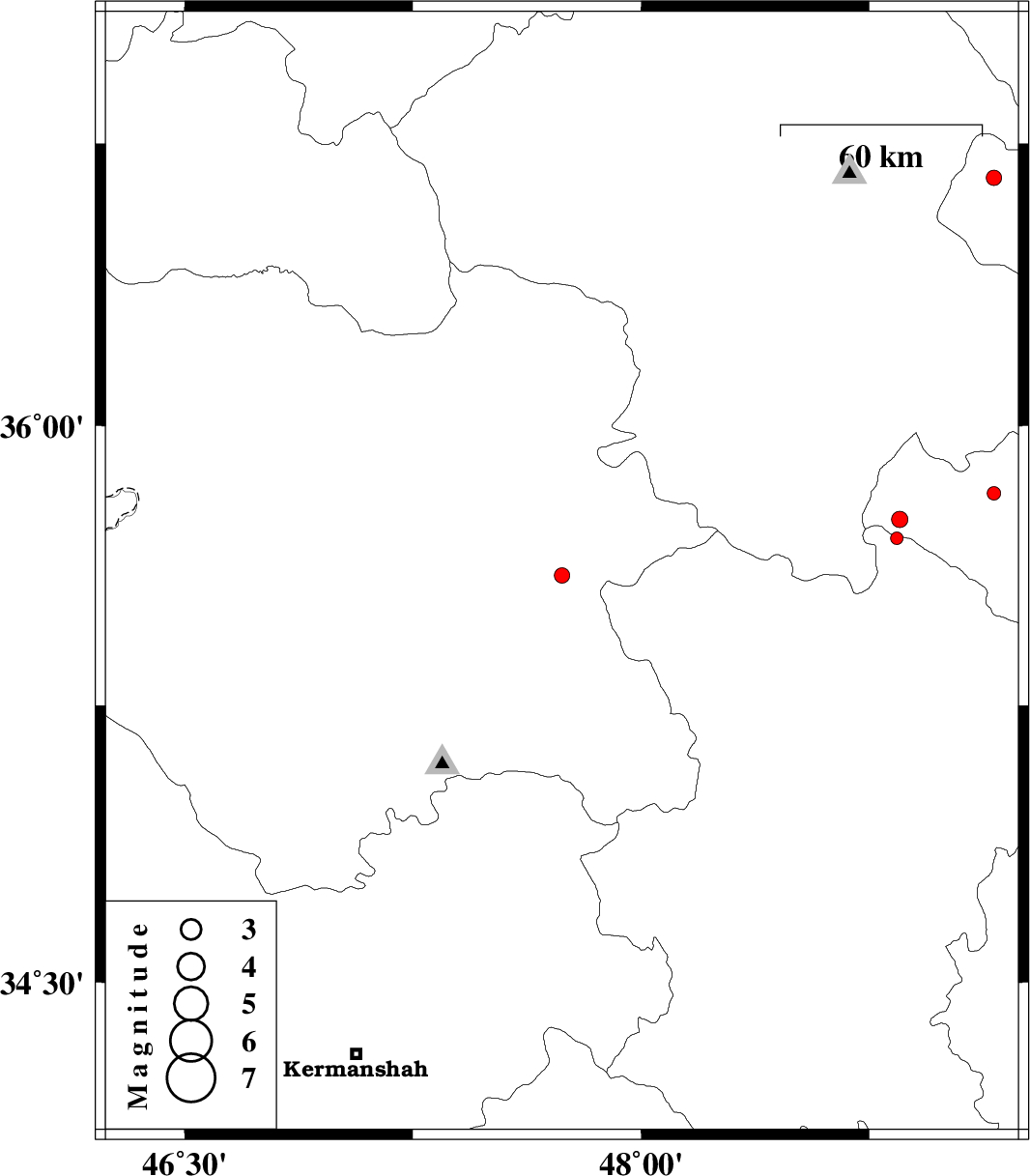 2014/04/01 | 19:38:11.7 | 00:08:11.7 | 35.6 | 47.74 | 14 | ML:2.2 | Kurdistan Province, 33 km South-East of Bijar | ||