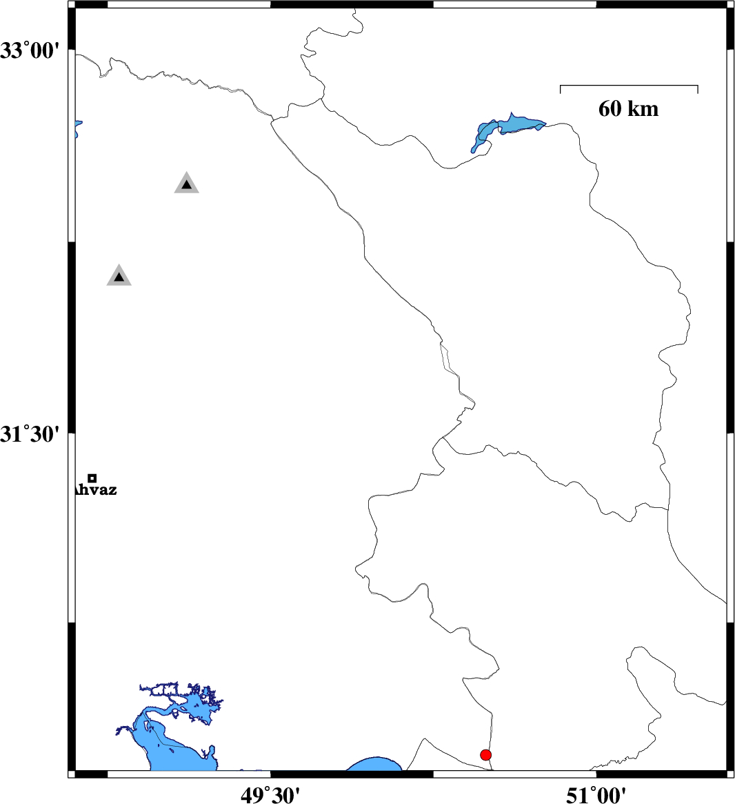 2014/03/29 | 20:02:30.6 | 00:32:30.6 | 32.54 | 48.74 | 15 | ML:2.2 | Khoozestan Province, 38 km East of Andimeshk | ||
