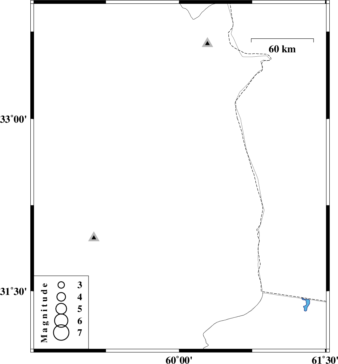 2014/04/07 | 00:12:22.6 | 04:42:22.6 | 32.49 | 60.01 | 14 | ML:4.3 | Khorasan(south) Province, 26 km South-East of Sarbisheh |