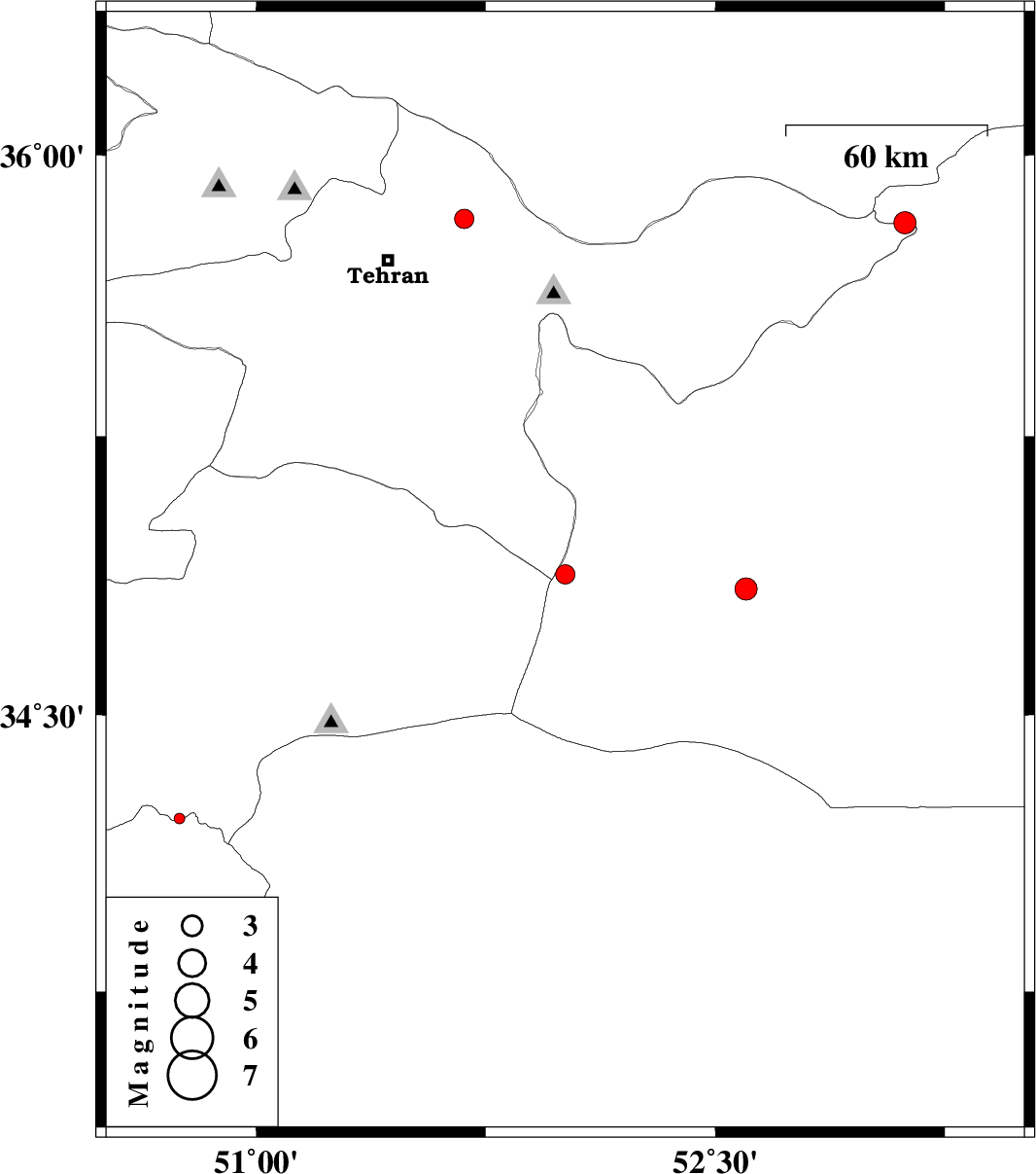2014/04/08 | 17:38:04.0 | 22:08:04.0 | 35.82 | 53.12 | 14 | ML:3.3 | Tehran Province, 33 km South of Pol-E-Sefid |