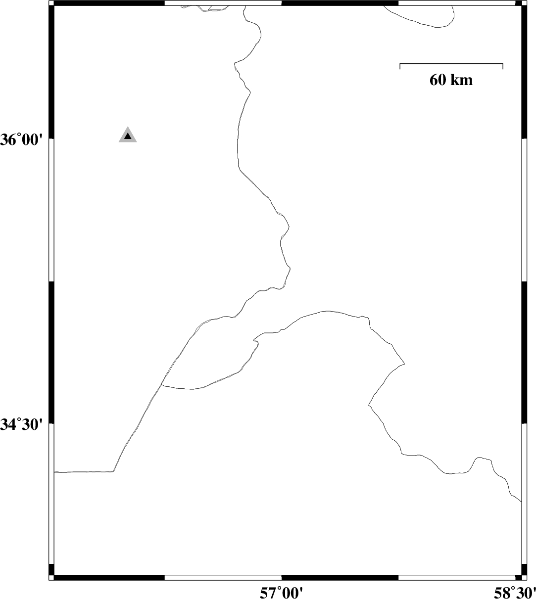 2014/04/23 | 13:22:24.4 | 17:52:24.4 | 35.19 | 57.04 | 16 | ML:2.7 | Khorasan(center) Province, 83 km West of Bardeskan |