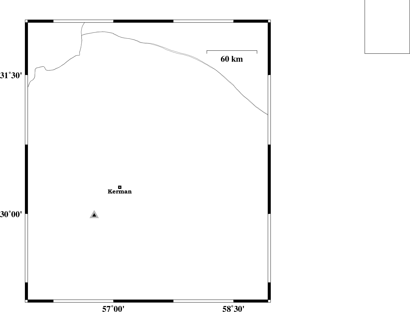 2014/04/23 | 11:15:41.9 | 15:45:41.9 | 30.57 | 57.45 | 14 | ML:2.8 | Kerman Province, 47 km North-East of Kerman |