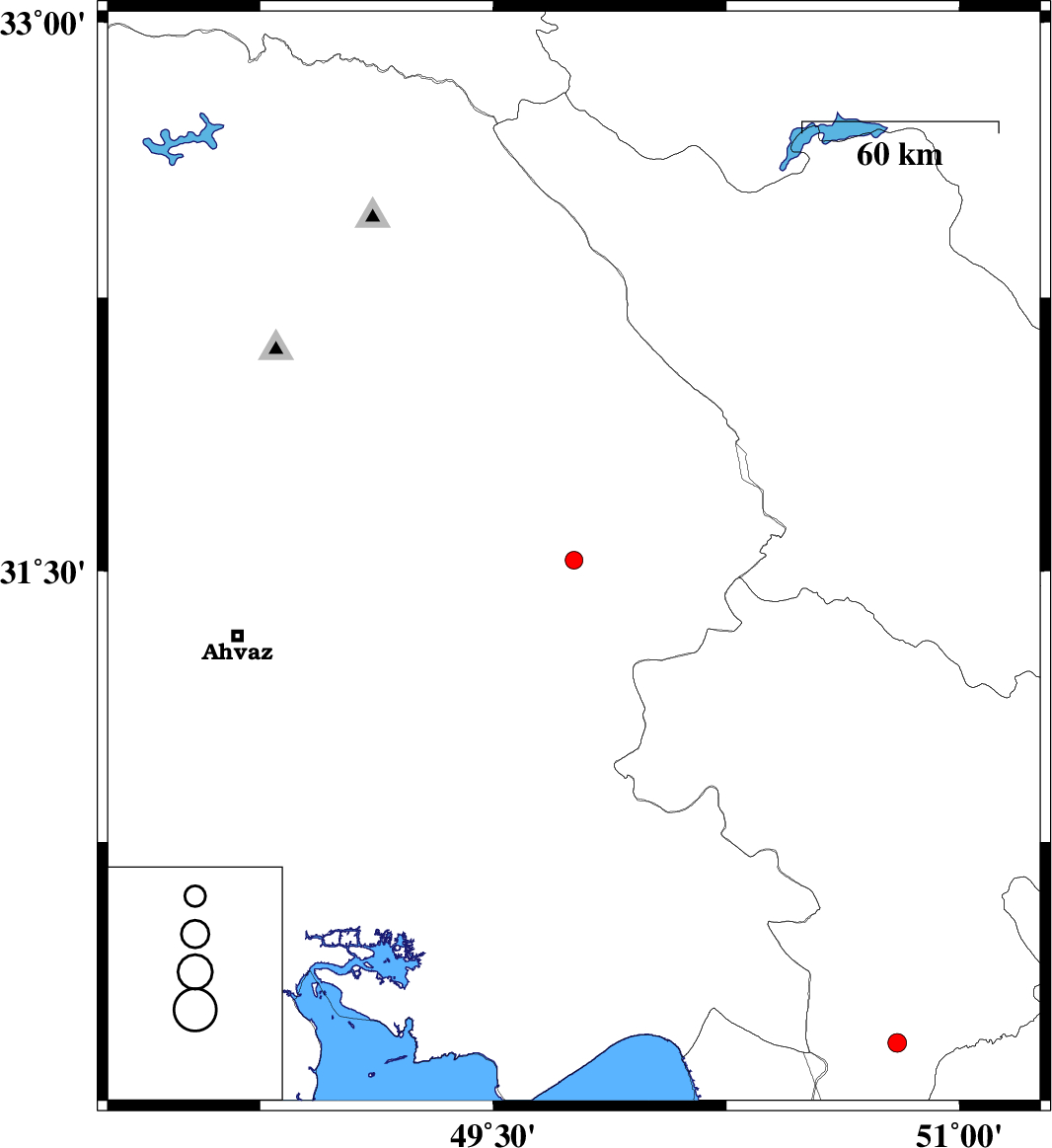 2014/05/11 | 07:45:33.8 | 12:15:33.8 | 31.53 | 49.76 | 15 | ML:2.5 | Khoozestan Province, 13 km West of Bagh Malek | ||