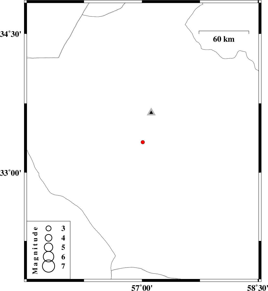 2014/05/22 | 19:36:56.5 | 00:06:56.5 | 32.16 | 55.62 | 14 | ML:3.3 | Yazd Province, 66 km North-East of Bafq | ||