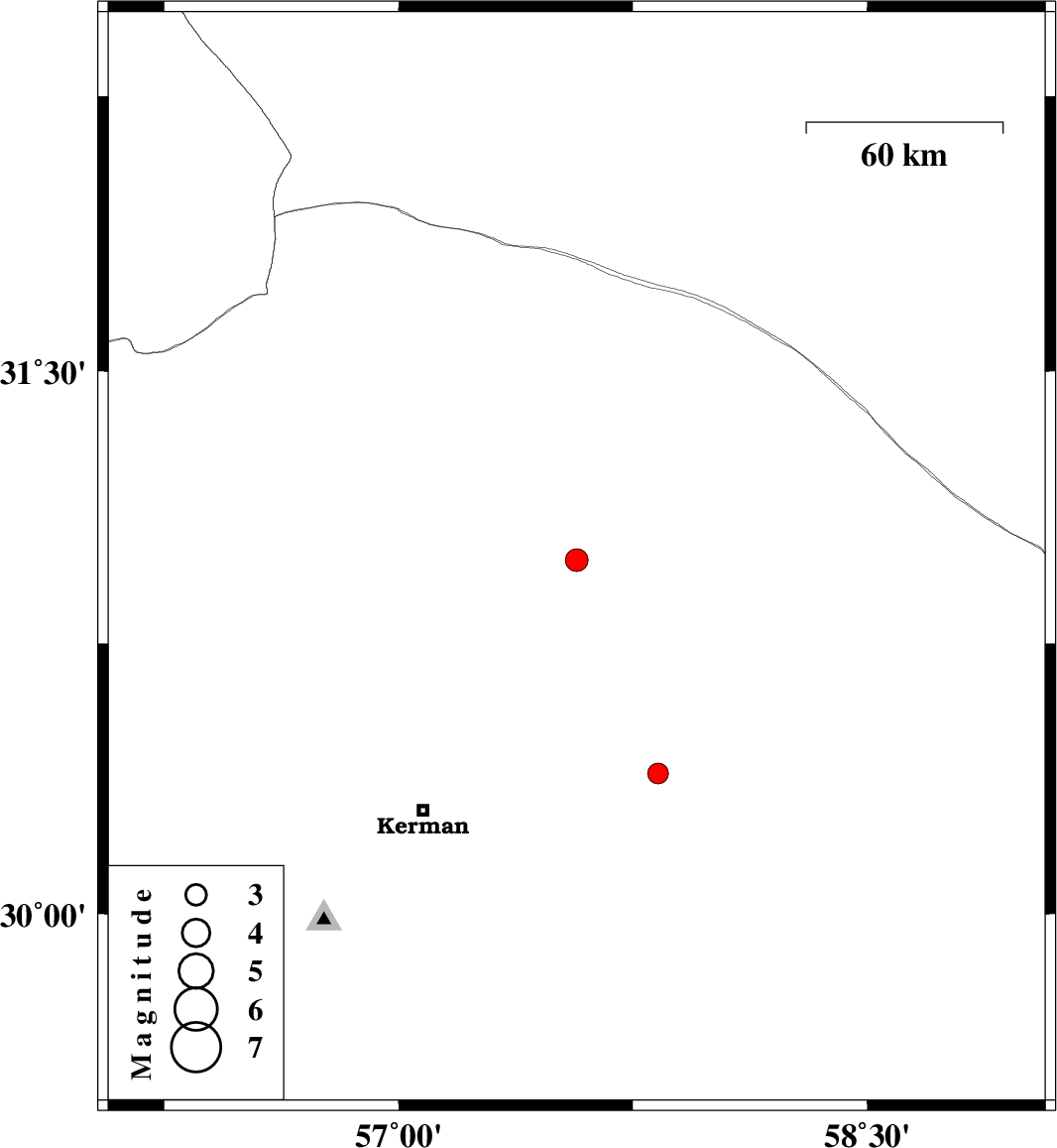 2014/05/28 | 21:15:34.5 | 01:45:34.5 | 30.39 | 57.83 | 18 | ML:2.9 | Kerman Province, 73 km North-East of Kerman |