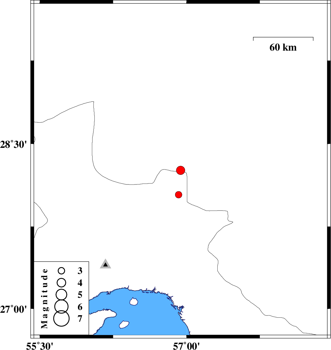 2014/06/11 | 06:06:33.0 | 10:36:33.0 | 28.26 | 56.94 | 14 | ML:3.9 | Kerman Province, 81 km North-West of Kahnuj | ||