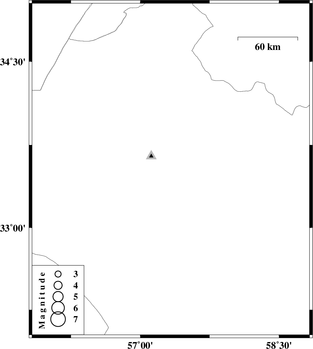 2014/06/19 | 07:18:40.7 | 11:48:40.7 | 33.52 | 57.33 | 14 | ML:2.5 | Khorasan(center) Province, 39 km East of Tabas |