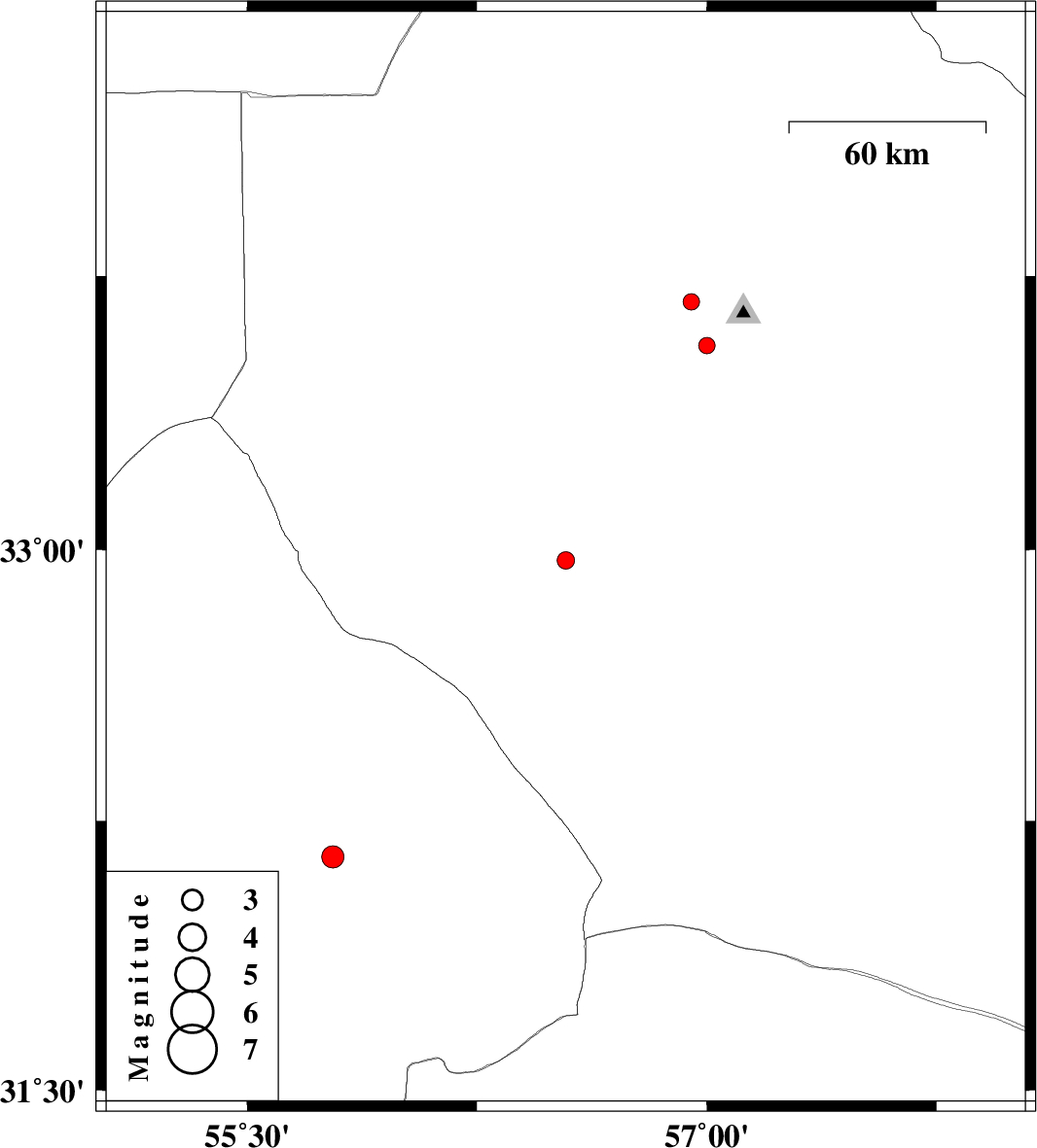 2014/07/05 | 22:14:08.2 | 02:44:08.2 | 32.15 | 55.78 | 17 | ML:3.2 | Yazd Province, 71 km North-East of Bafq | ||
