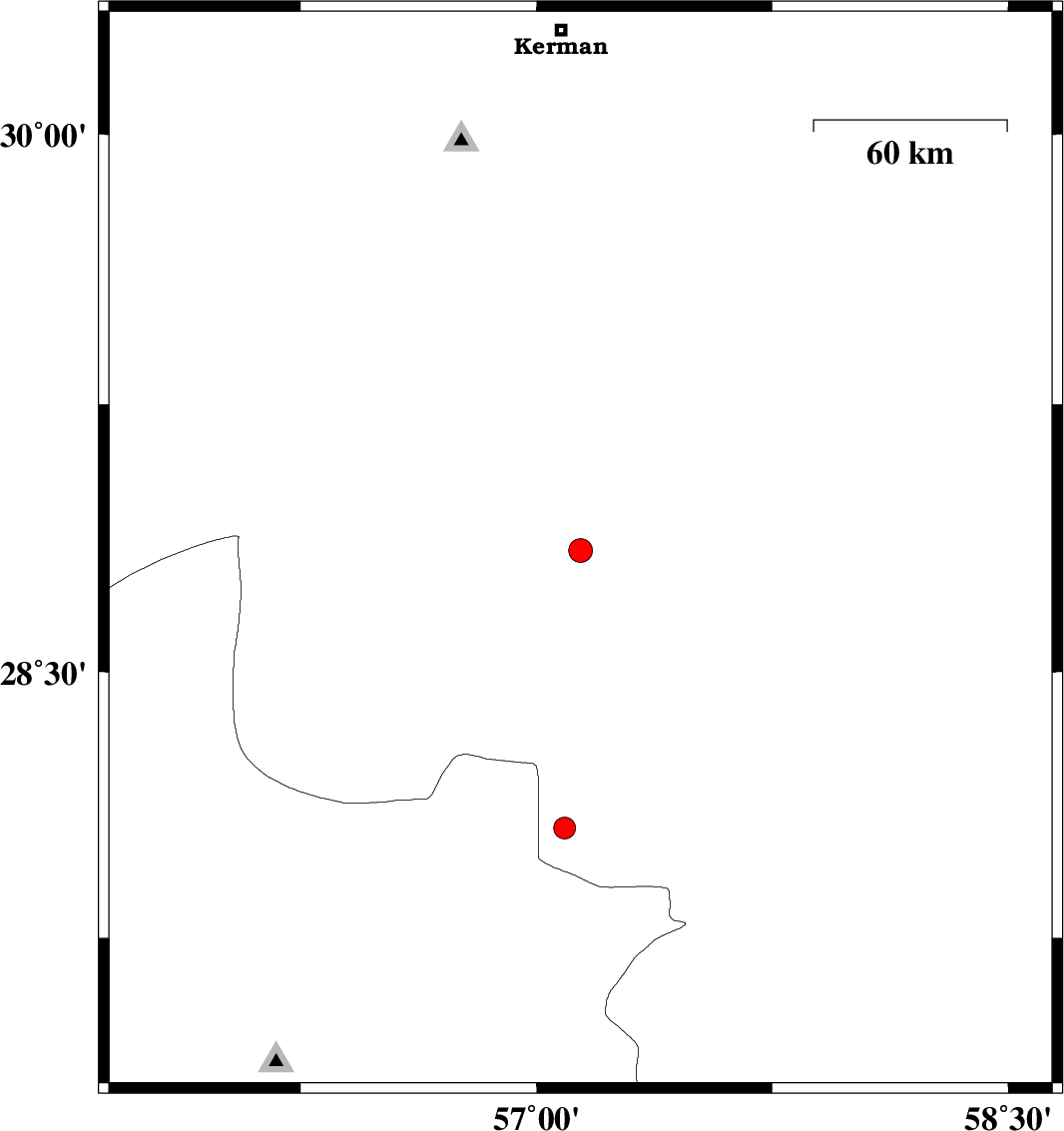2014/07/14 | 20:59:59.6 | 01:29:59.6 | 28.06 | 57.09 | 14 | ML:3.1 | Kerman Province, 61 km North-West of Kahnuj |