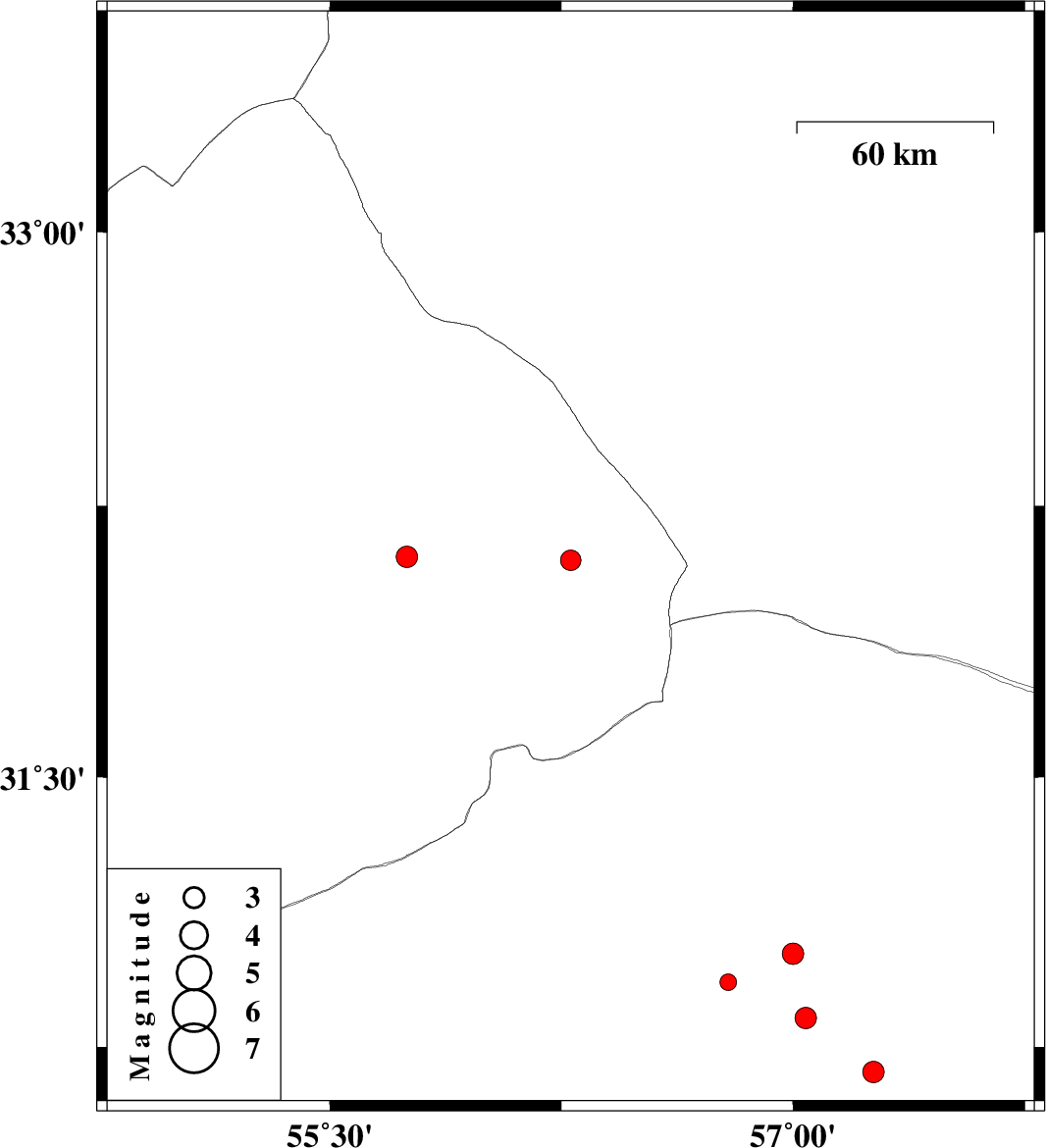 2014/07/27 | 00:04:14.9 | 04:34:14.9 | 30.83 | 57.04 | 14 | ML:3.1 | Kerman Province, 45 km East of Zarand |