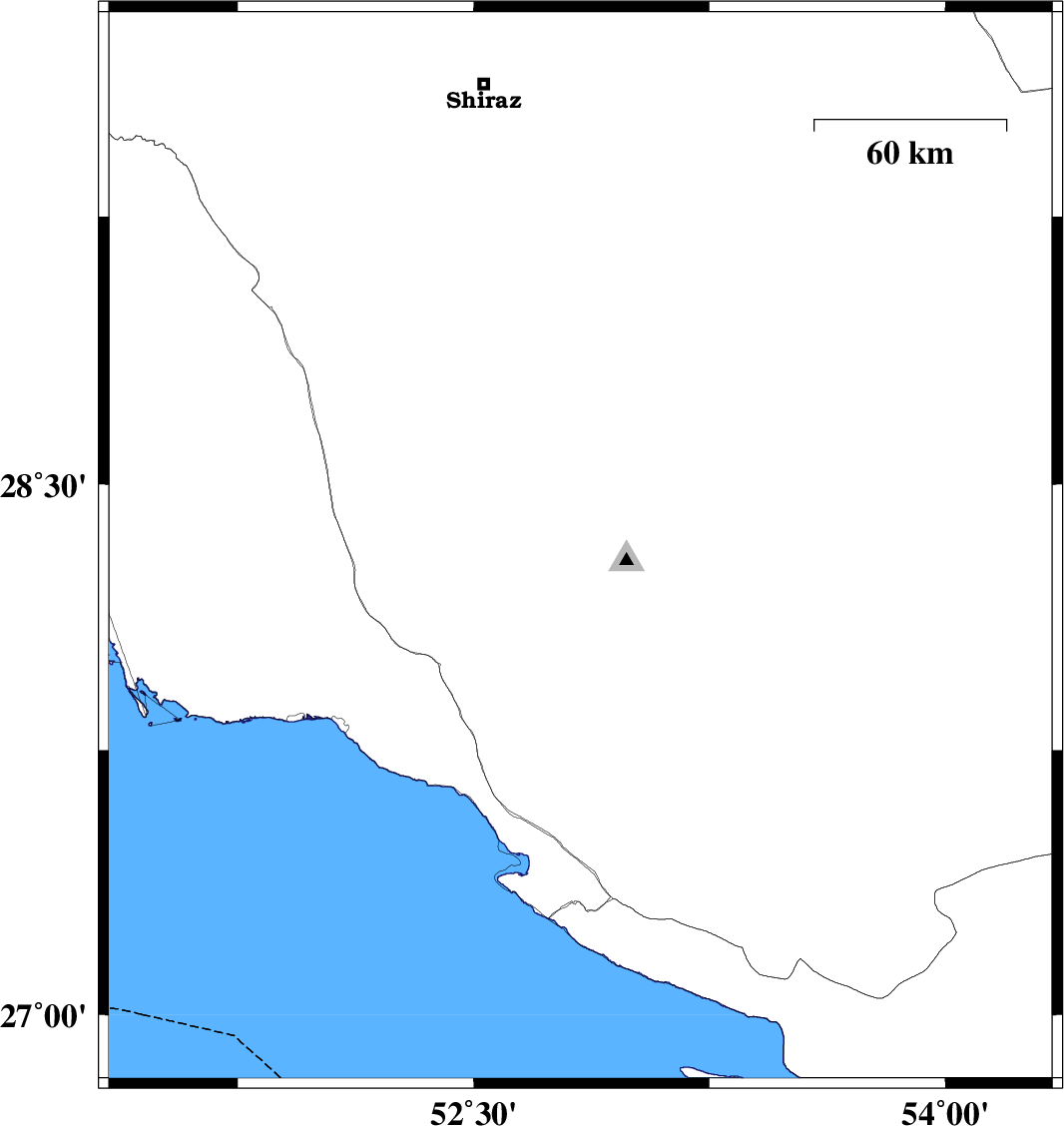 2014/07/29 | 15:32:08.3 | 20:02:08.3 | 27.04 | 54.32 | 46 | ML:3.9 | Hormozgan Province, 18 km South of Bastak |