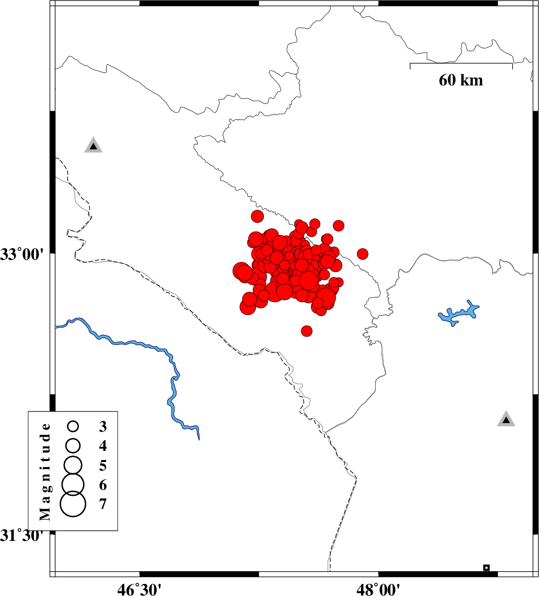 2014/08/18 05:25:51.3 09:55:51.3 32.6947.6114 ML:5.8 Ilam Province, 33 km East of Dehloran