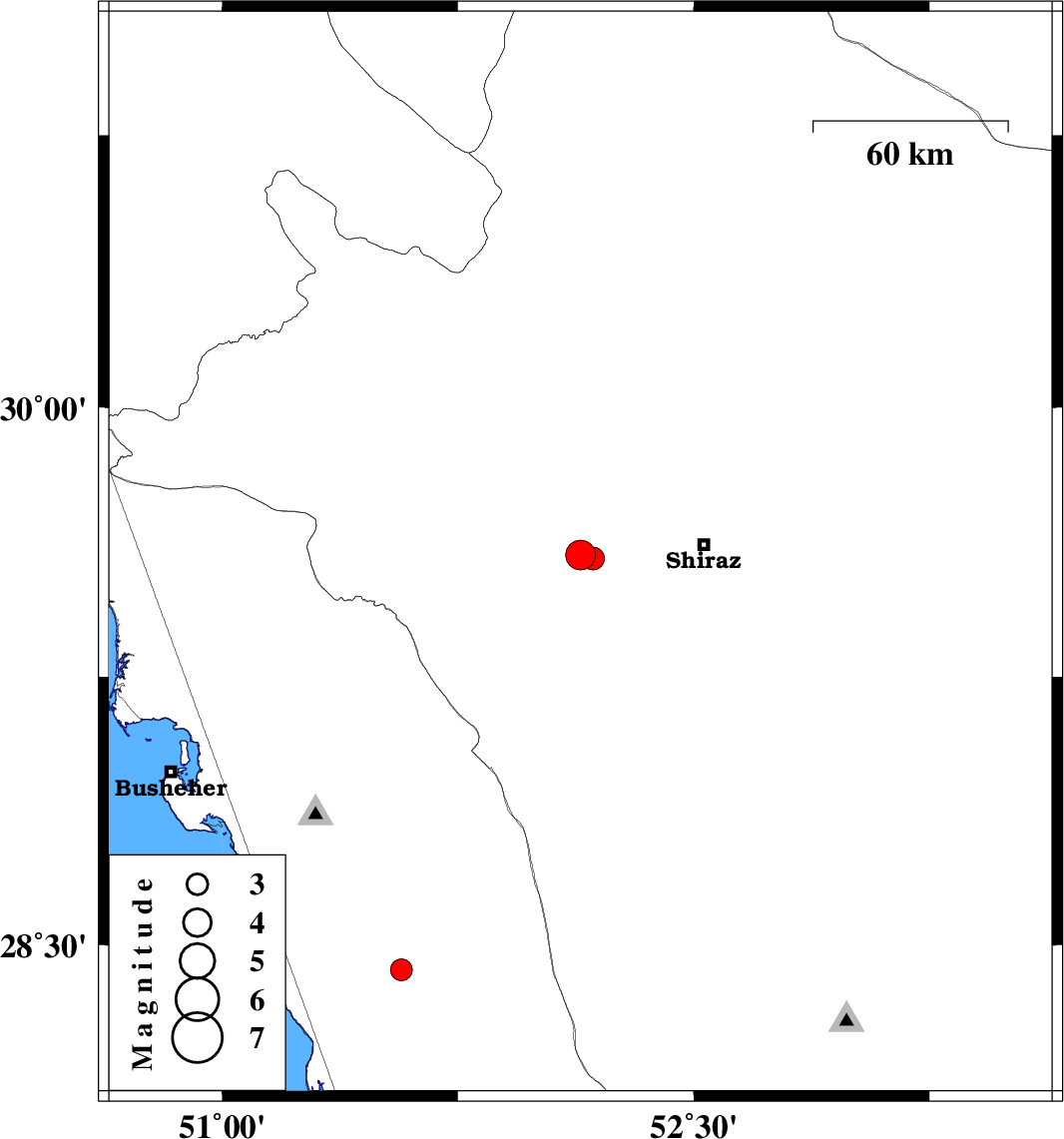 2014/08/27 | 11:51:13.2 | 16:21:13.2 | 29.59 | 52.14 | 14 | ML:4.3 | Fars Province, 38 km West of Shiraz | ||