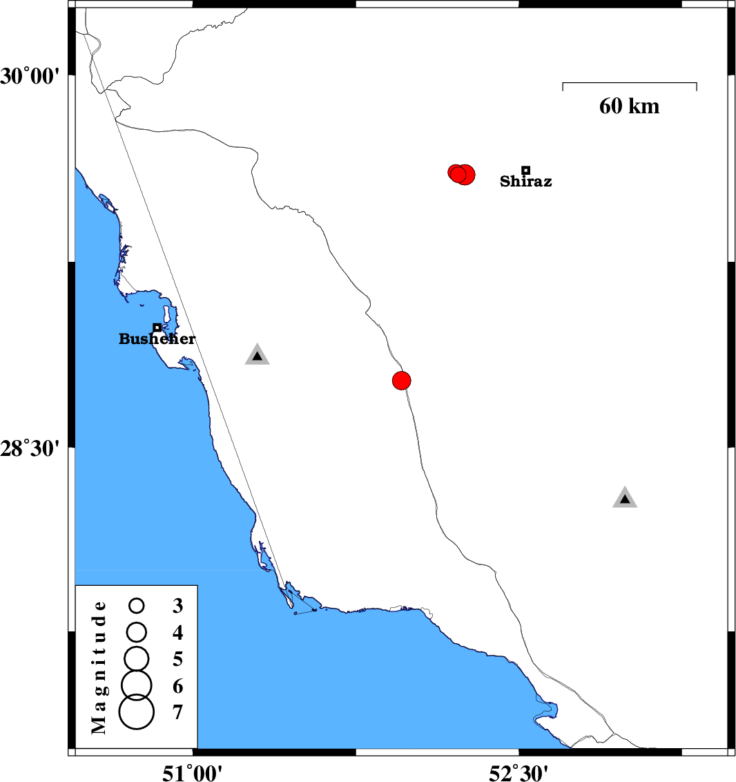 2014/09/05 | 13:24:55.8 | 17:54:55.8 | 29.61 | 52.21 | 6 | ML:3.2 | Fars Province, 31 km West of Shiraz | ||