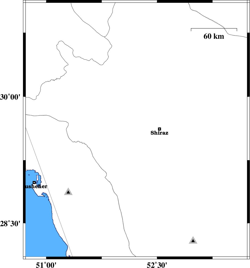2014/09/05 | 13:24:55.8 | 17:54:55.8 | 29.61 | 52.21 | 6 | ML:3.2 | Fars Province, 31 km West of Shiraz | ||