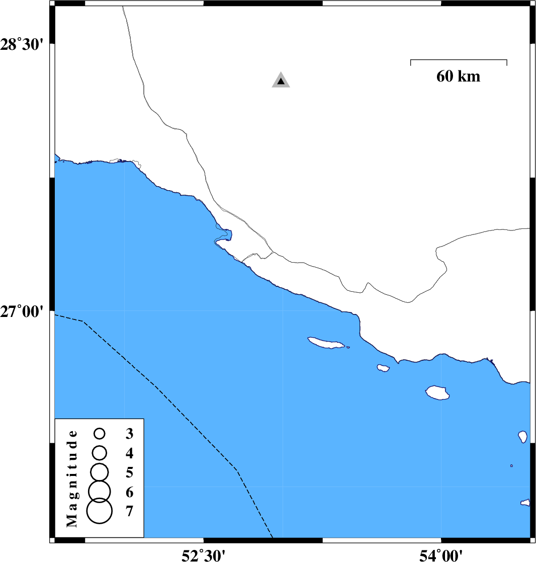 2014/09/13 | 00:29:12.9 | 04:59:12.9 | 27.21 | 53.06 | 18 | ML:3 | Hormozgan Province, 17 km South-West of Lamerd |