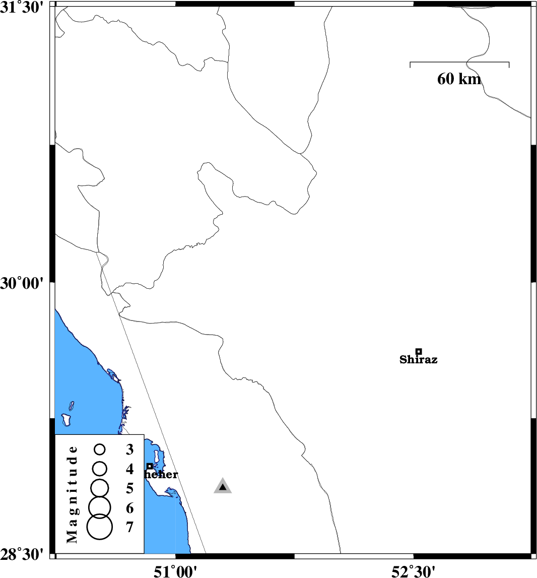 2014/09/25 | 08:56:56.9 | 12:26:56.9 | 30 | 51.74 | 46 | ML:3.5 | Fars Province, 24 km South-East of Nurabad |