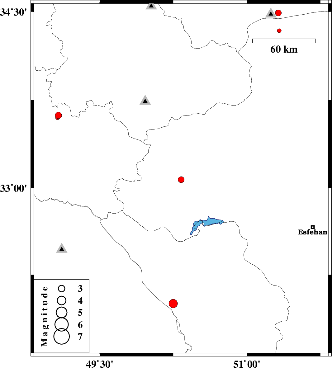 2014/10/05 | 07:58:47.3 | 11:28:47.3 | 34.34 | 51.33 | 9 | ML:1.8 | Esfahan Province, 34 km North-West of Aran va bidgol | ||