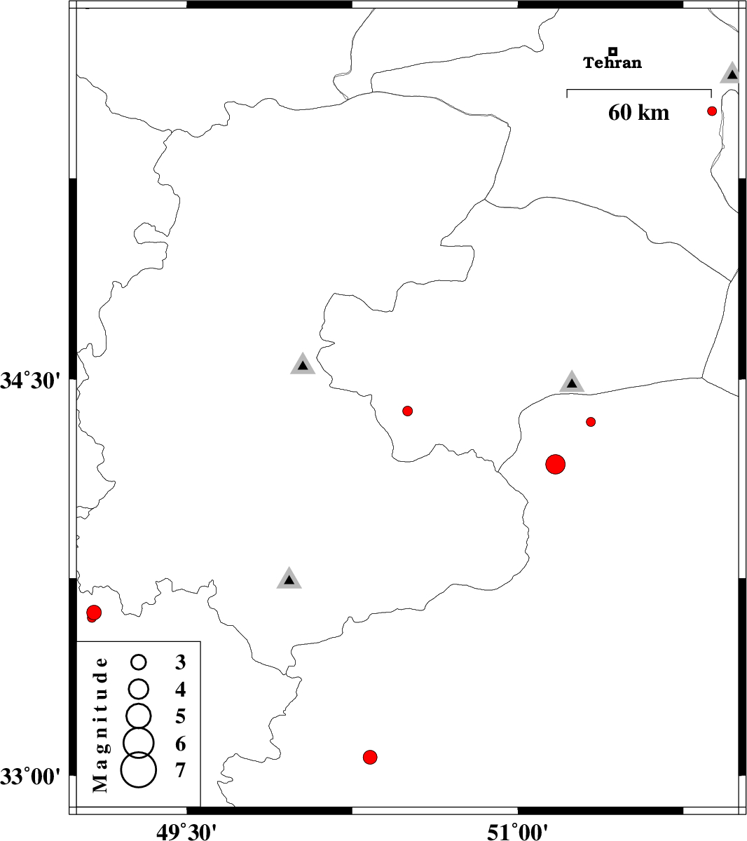 2014/10/08 | 03:36:27.9 | 07:06:27.9 | 35.5 | 51.88 | 15 | ML:1.9 | Tehran Province, 19 km East of Pakdasht | ||
