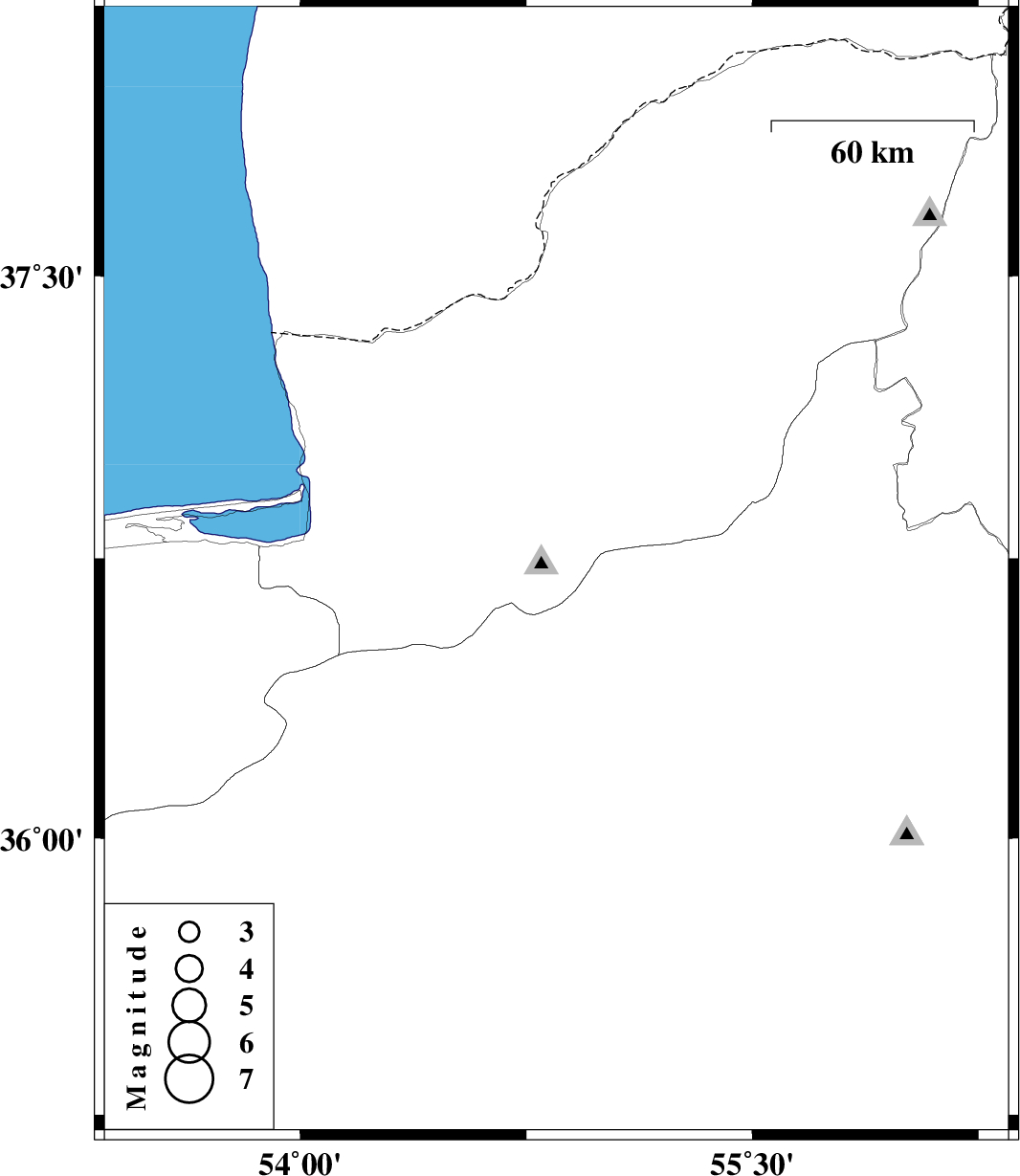 2014/10/18 | 13:10:19.5 | 16:40:19.5 | 36.71 | 54.85 | 18 | ML:3.6 | Golestan Province, 22 km South of Ali Abad |