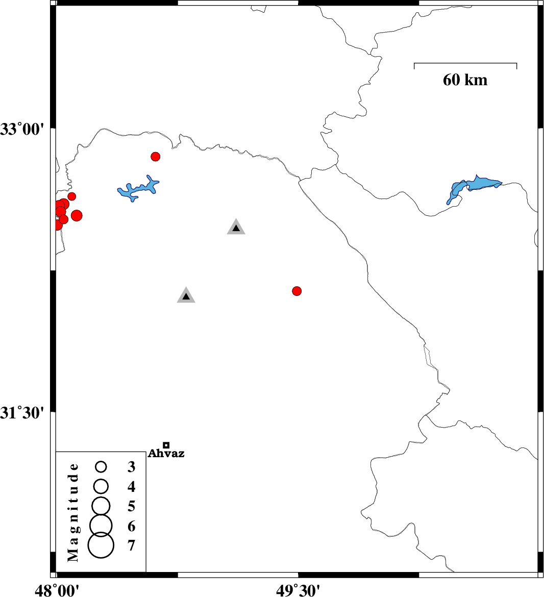 2014/10/17 | 11:07:11.6 | 14:37:11.6 | 32.59 | 48.01 | 14 | ML:3.1 | Khoozestan Province, 35 km North-West of Andimeshk | ||