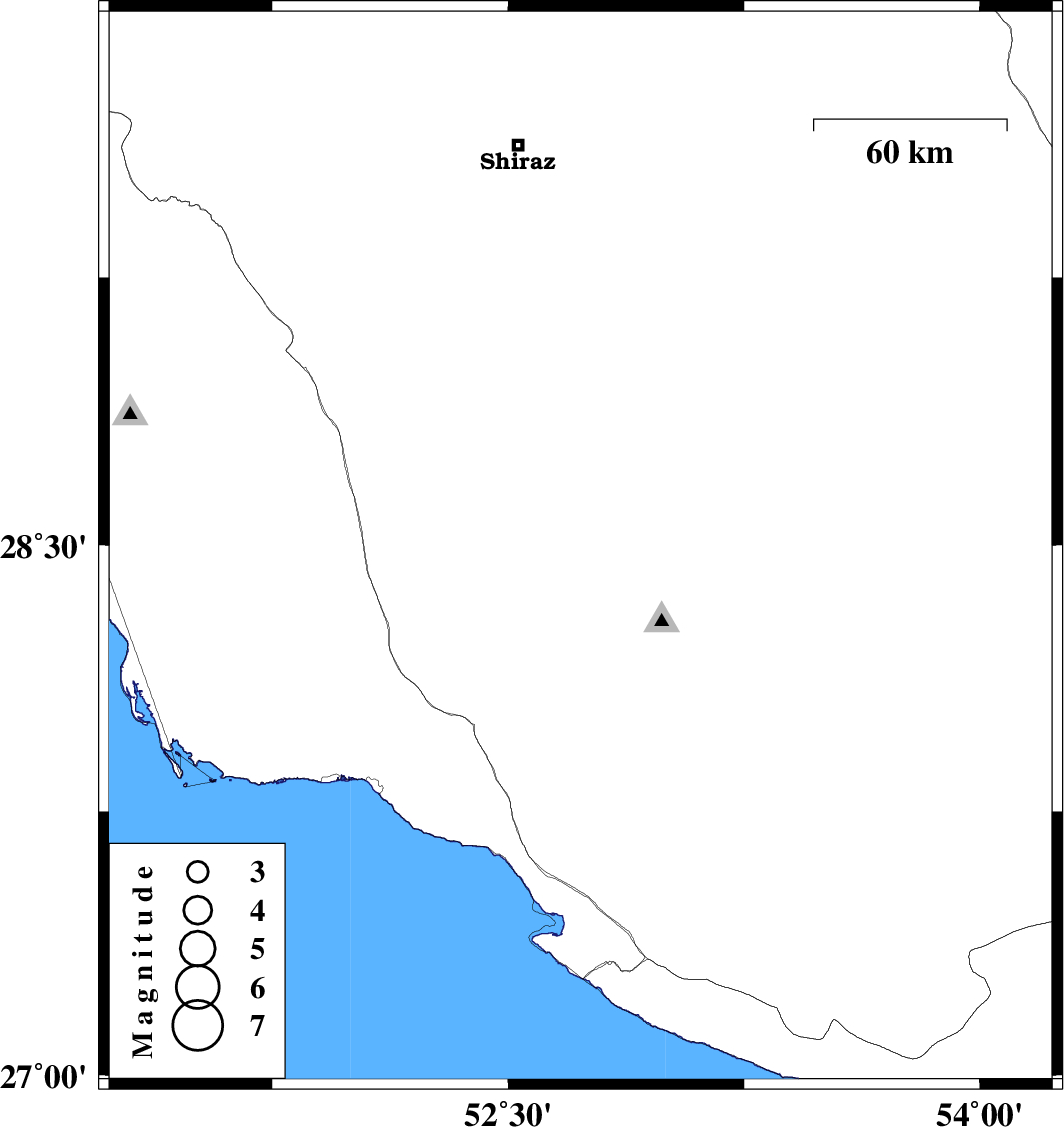 2014/10/25 | 15:31:30.3 | 19:01:30.3 | 28.49 | 52.73 | 14 | ML:4 | Fars Province, 30 km West of Qir va Karzin |
