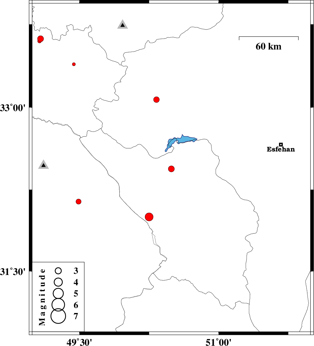 2014/10/10 | 19:57:55.1 | 23:27:55.1 | 33.62 | 49.08 | 6 | ML:2.9 | Lorestan Province, 15 km North of Dorud | ||