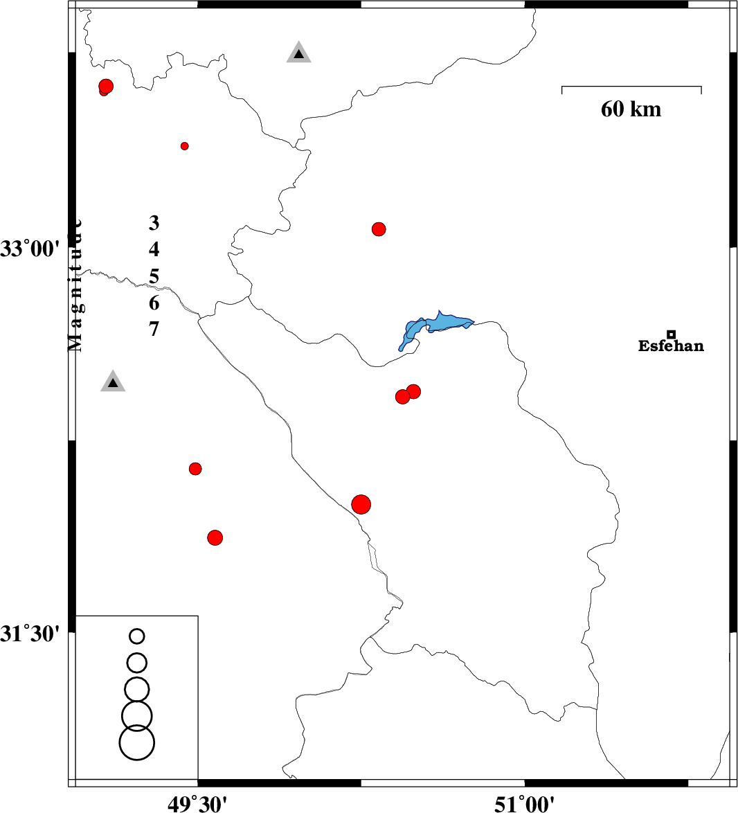 2014/10/10 | 19:57:55.1 | 23:27:55.1 | 33.62 | 49.08 | 6 | ML:2.9 | Lorestan Province, 15 km North of Dorud | ||