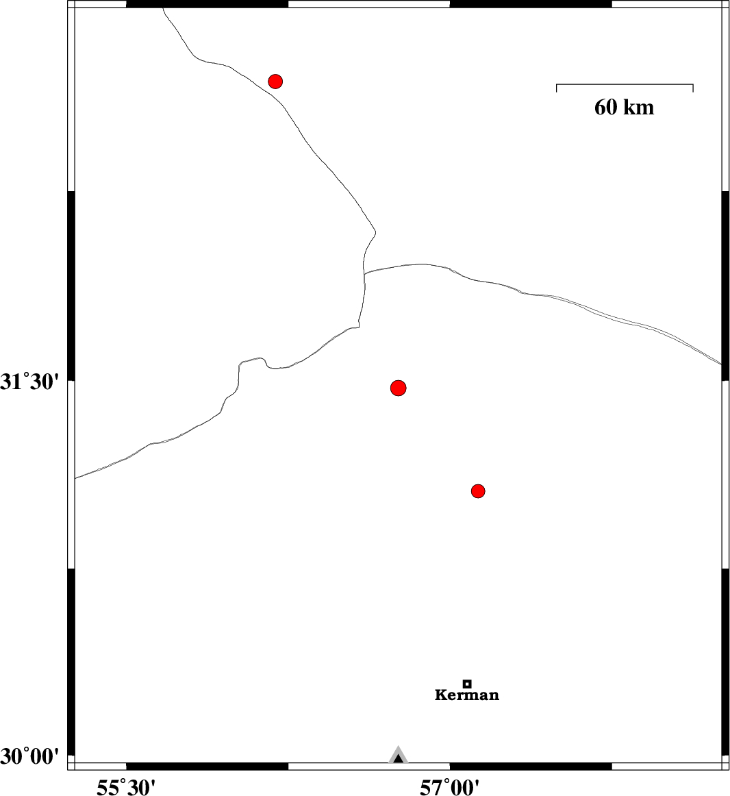 2014/10/29 | 09:52:46.5 | 13:22:46.5 | 31.47 | 56.76 | 17 | ML:3.2 | Kerman Province, 23 km North of Ravar | ||