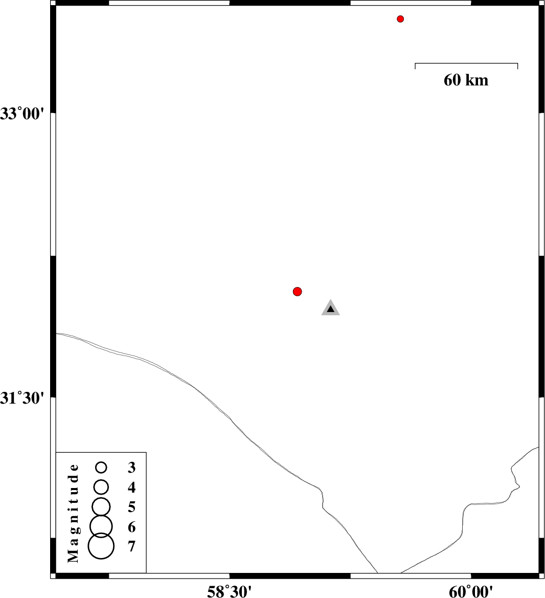2014/10/30 | 12:33:54.1 | 16:03:54.1 | 32.06 | 58.92 | 14 | ML:2.4 | Khorasan(south) Province, 98 km South-West of Birjand |