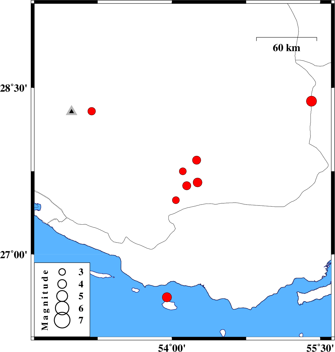 2014/11/08 | 22:13:04.2 | 01:43:04.2 | 27.85 | 54.25 | 14 | ML:3.8 | Fars Province, 21 km North of Lar |