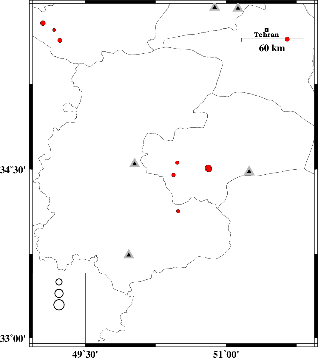 2014/10/29 | 16:18:29.3 | 19:48:29.3 | 34.51 | 50.81 | 33 | ML:3.2 | Qom Province, 16 km South of Qom | ||