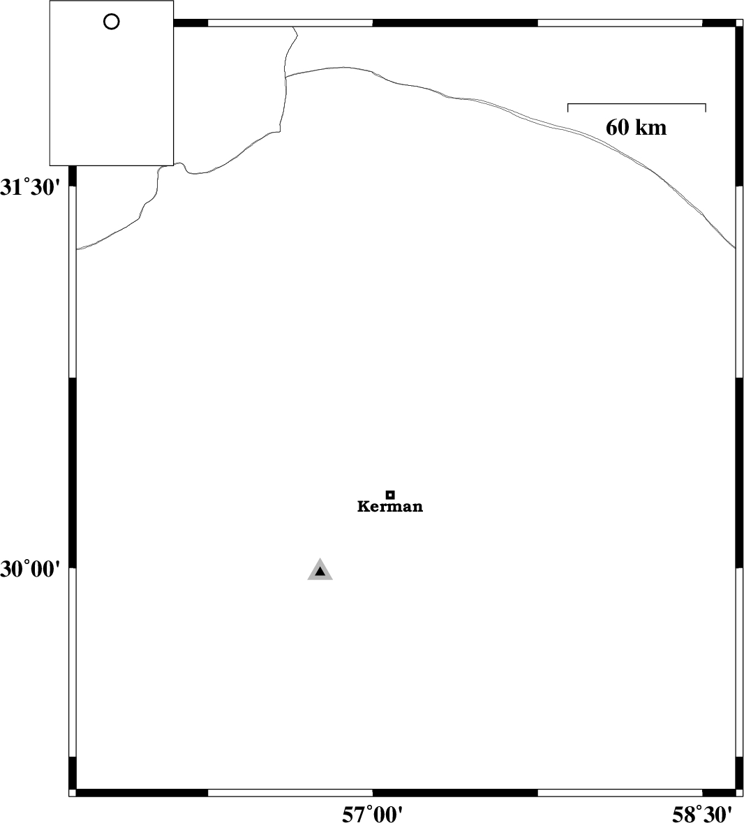 2014/12/28 | 17:39:59.0 | 21:09:59.0 | 30.23 | 57.48 | 14 | ML:2.4 | Kerman Province, 39 km East of Kerman | ||