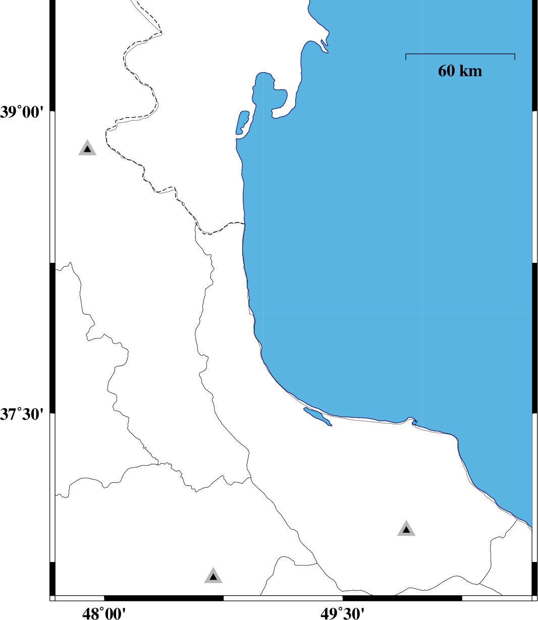 2015/01/04 | 12:51:07.1 | 16:21:07.1 | 37.28 | 50.53 | 27 | ML:2.8 | Caspian Sea, 27 km North-East of Rudsar |