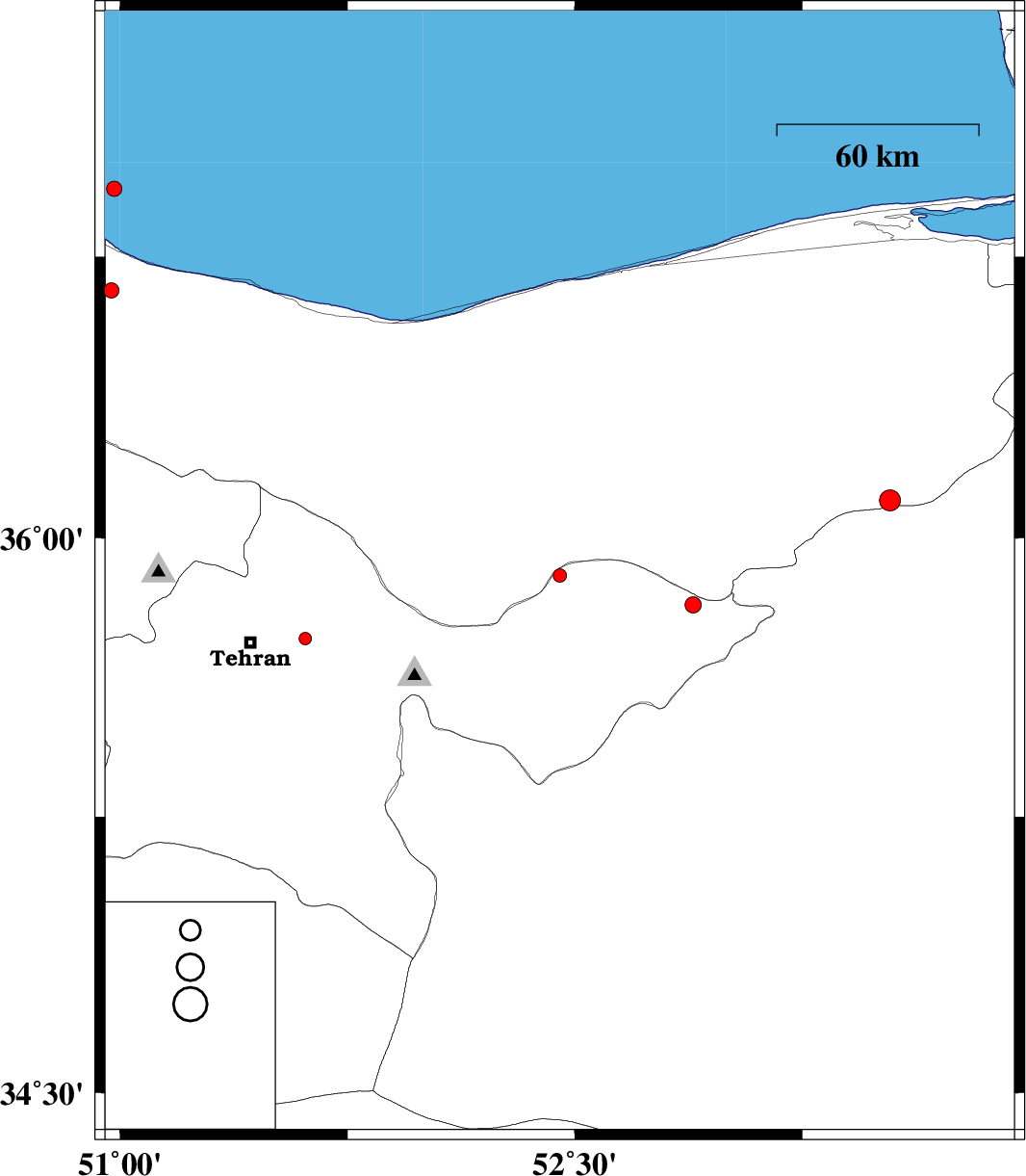 2015/01/02 | 04:56:21.0 | 08:26:21.0 | 36.93 | 50.98 | 15 | ML:2.3 | Caspian Sea, 15 km North of Tonekabon |