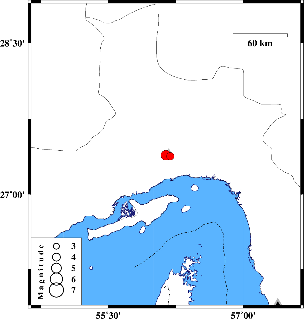 2015/01/25 | 20:11:19.3 | 23:41:19.3 | 27.39 | 56.14 | 14 | ML:5 | Hormozgan Province, 27 km North-West of Bandar-e abbas |