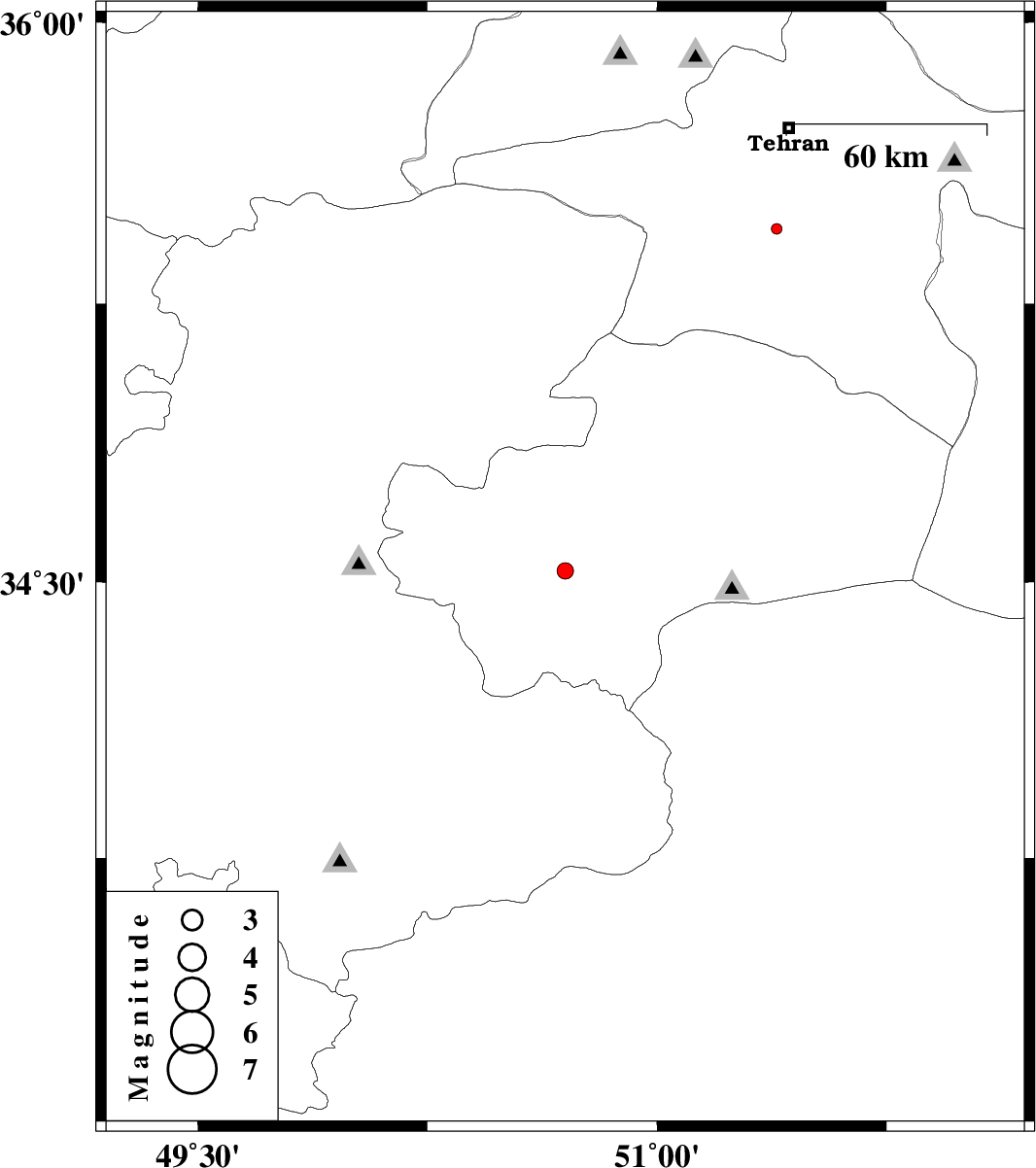 2015/01/30 | 13:35:21.7 | 17:05:21.7 | 35.45 | 51.39 | 18 | ML:1.5 | Tehran Province, 18 km South of Rey |