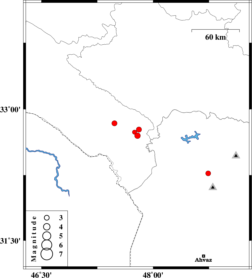 2015/02/11 | 15:32:07.3 | 19:02:07.3 | 32.77 | 47.81 | 18 | ML:3.2 | Ilam Province, 44 km South of Pol-e dokhtar | ||