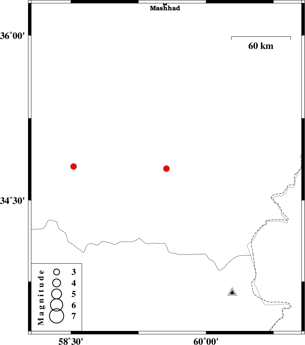 2015/04/02 | 21:09:54.3 | 01:39:54.3 | 34.79 | 59.56 | 15 | ML:2.9 | Khorasan(center) Province, 58 km North-West of Khaf | ||
