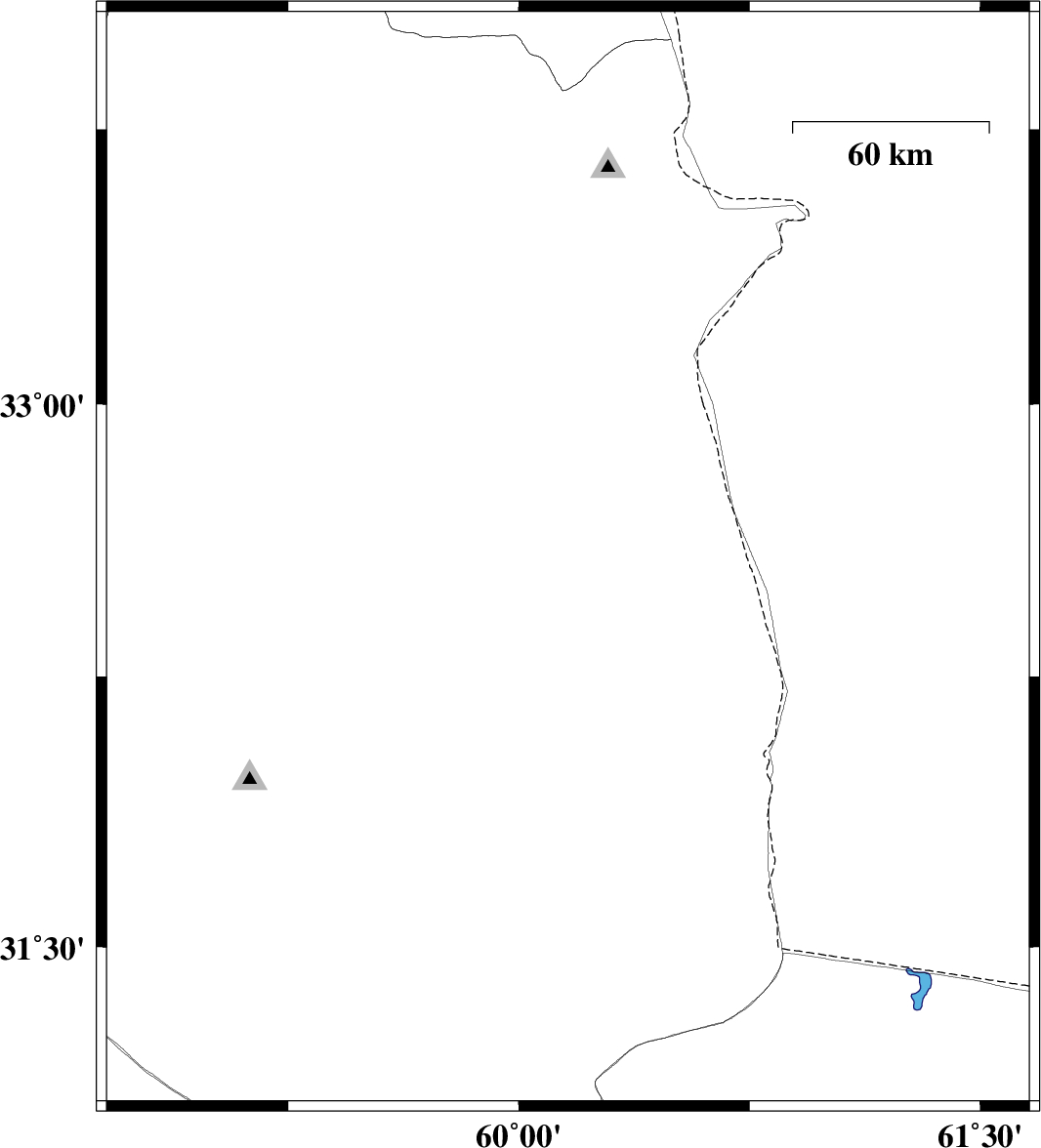 2015/04/11 | 17:53:14.4 | 22:23:14.4 | 32.57 | 60.16 | 6 | ML:2.9 | Khorasan(south) Province, 35 km East of Sarbisheh |