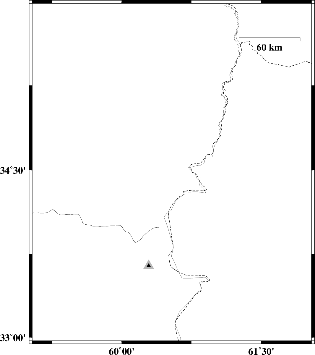 2015/04/14 | 16:55:54.4 | 21:25:54.4 | 32.98 | 60.54 | 26 | ML:2.9 | Khorasan(south) Province, 80 km North-East of Sarbisheh |