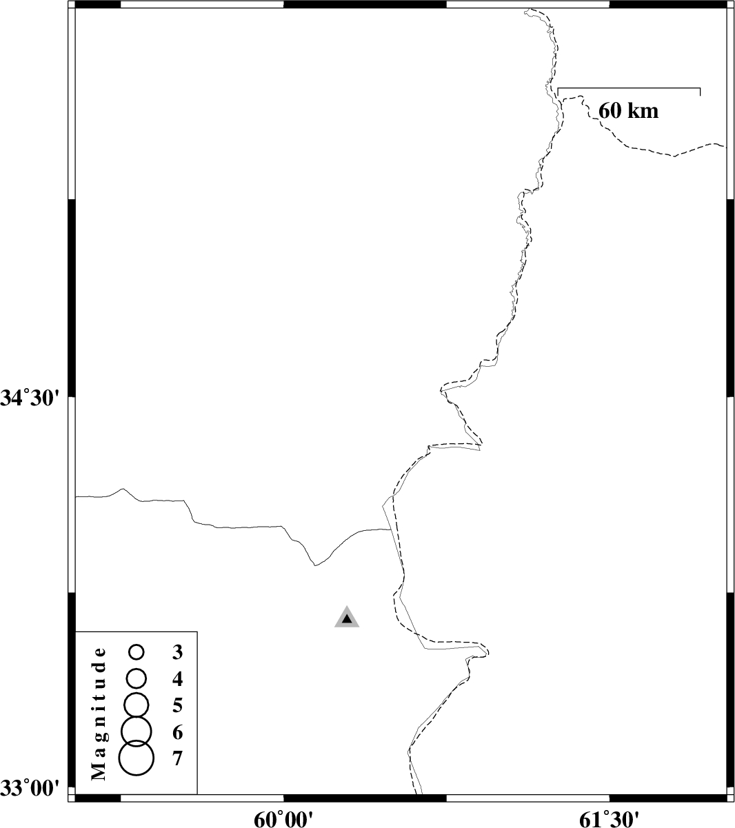 2015/05/03 | 08:31:06.3 | 13:01:06.3 | 34.47 | 60.54 | 15 | ML:2.7 | Khorasan(center) Province, 38 km East of Khaf |