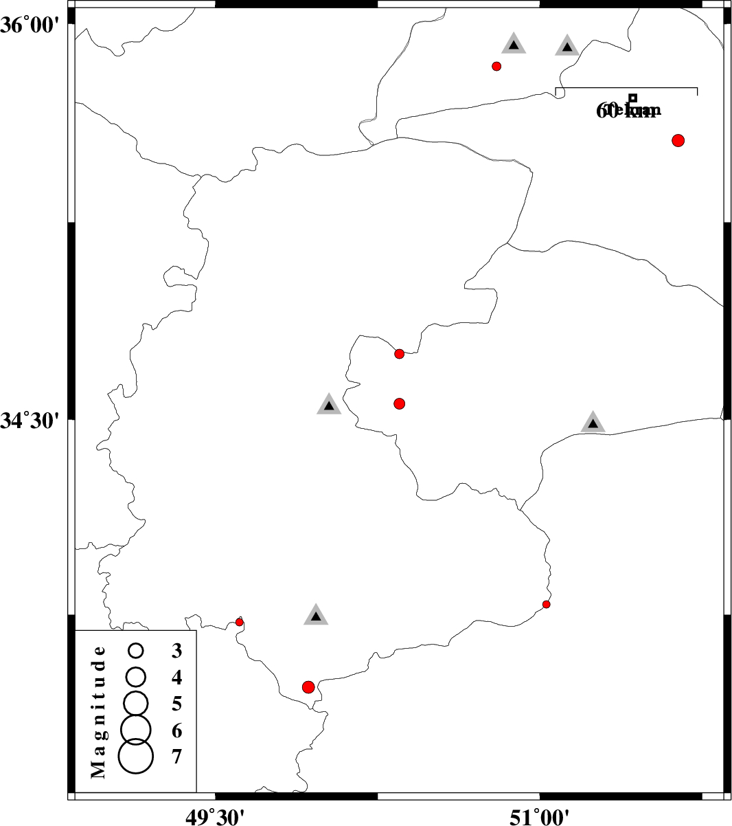 | 2015/05/06 | 05:38:44.3 | 10:08:44.3 | 34.56 | 50.35 | 15 | ML:2.2 | Qom Province, 32 km East of Ashtiyan | ||