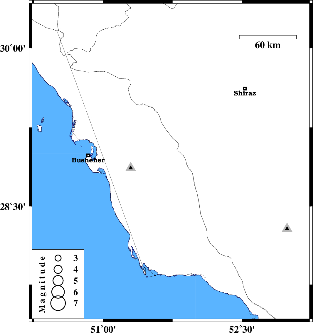 2015/05/08 | 00:25:01.5 | 04:55:01.5 | 28.92 | 51.73 | 26 | ML:4.2 | Bushehr Province, 35 km West of Farashband |