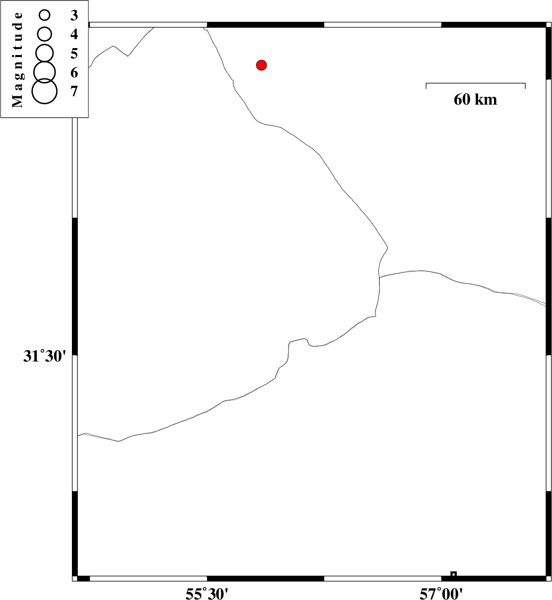 | 2015/05/17 | 09:31:56.1 | 14:01:56.1 | 31.74 | 55.72 | 14 | ML:2.3 | Yazd Province, 34 km North-East of Bafq | ||