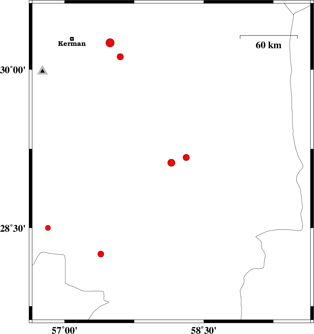| 2015/05/25 | 16:30:54.4 | 21:00:54.4 | 30.12 | 57.6 | 14 | ML:3.1 | Kerman Province, 53 km South-East of Kerman | ||
