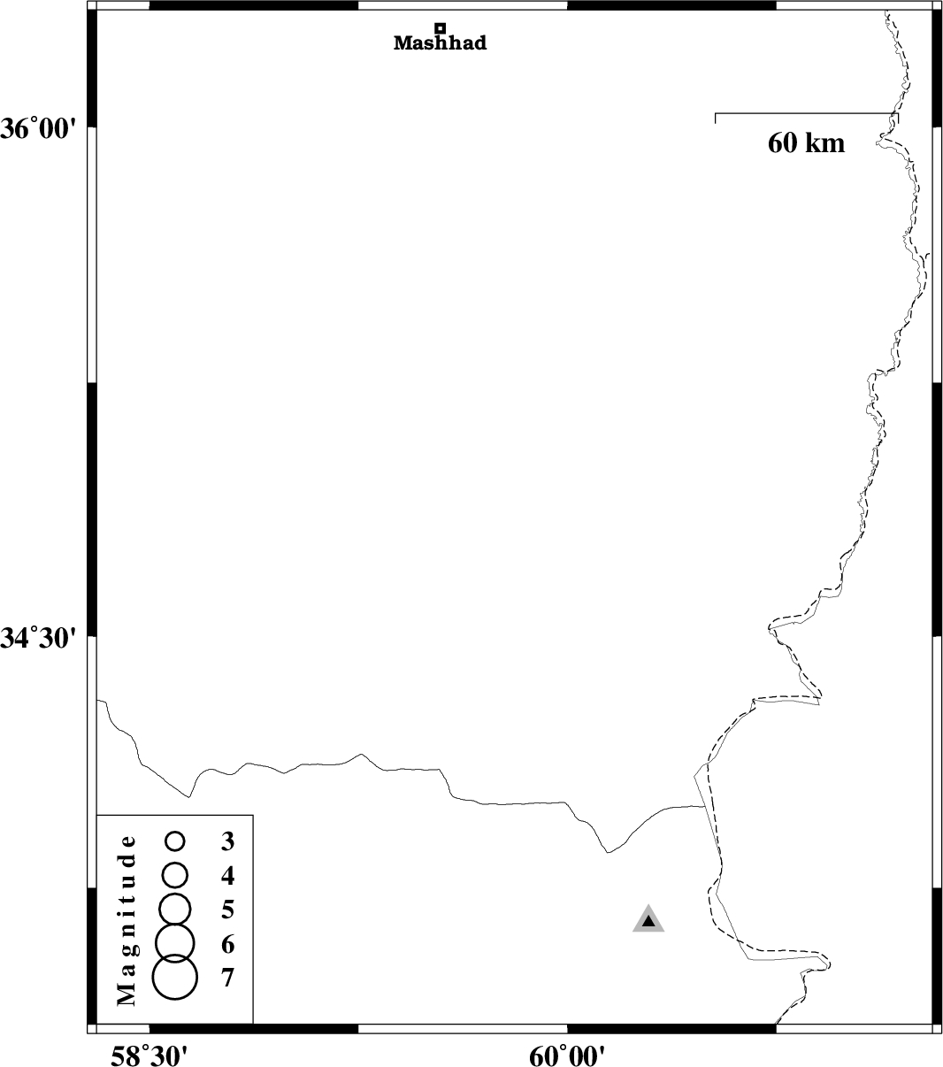 | 2015/05/29 | 17:59:27.3 | 22:29:27.3 | 34.84 | 59.81 | 14 | ML:3.2 | Khorasan(center) Province, 42 km North-West of Khaf |