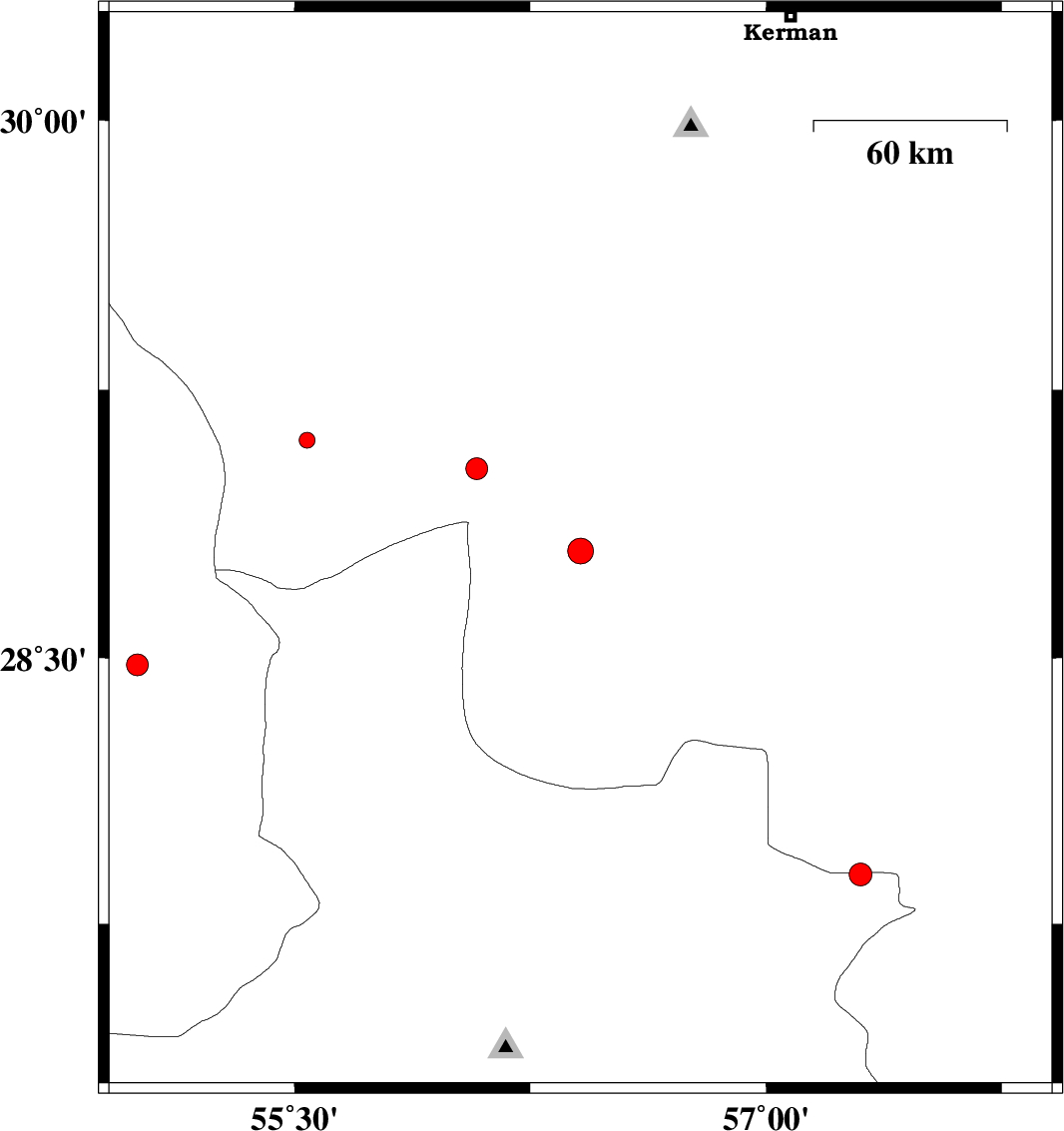 | 2015/05/31 | 08:40:50.5 | 13:10:50.5 | 29.11 | 55.54 | 14 | ML:2.2 | Kerman Province, 40 km South-West of Sirjan | ||